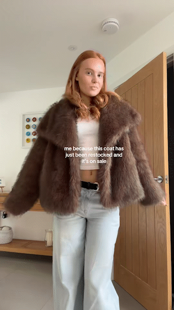 🎉 Snag this gorgeous, fluffy, oversized, super warm brown faux fur coat. 🧥