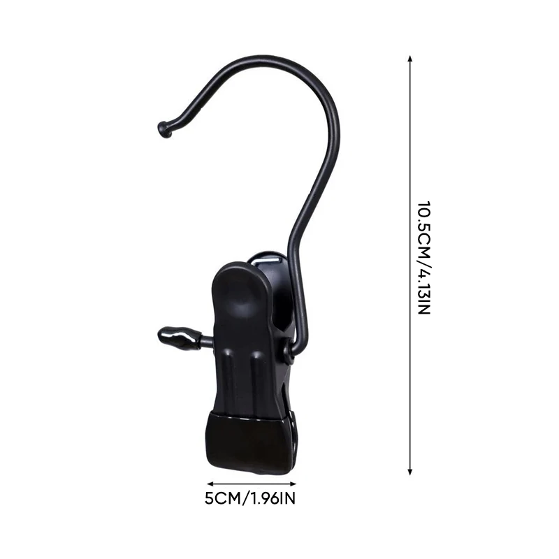 MATERLAL: clothes pins Made of Metal with Use of electrophoresis process safe and environmentally strong and durable, The hook can be rotated 360°, and the non-slip clip has a good clamping force, even heavy boots can easily get the job done