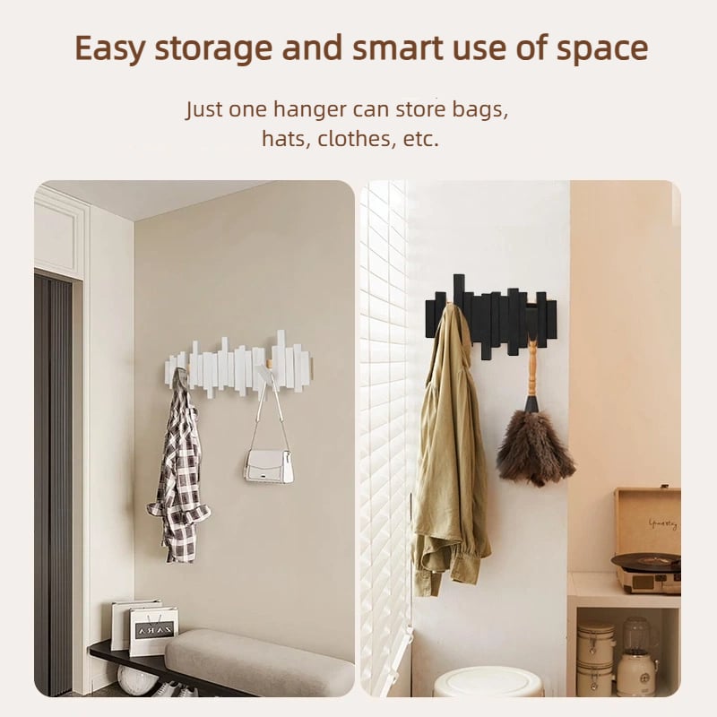 🎨 Special Design: At first glance, it looks like modern wall décor. With a simple pull, hooks flip out for practical use. Fold them back to create a sleek, minimalist outline.
